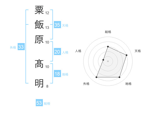 粟飯原 髙明さんの総格は53画の3点!