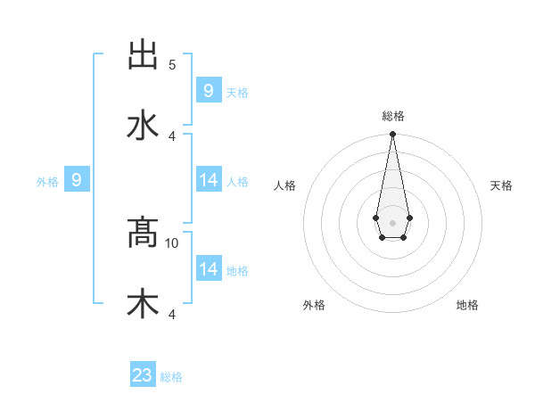 出水 髙木さんの総格は23画の5点!