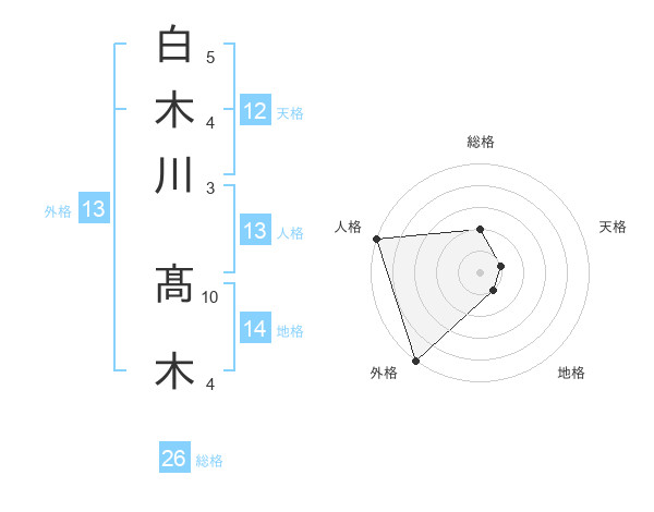 白木川 髙木さんを姓名の画数から五運を鑑定