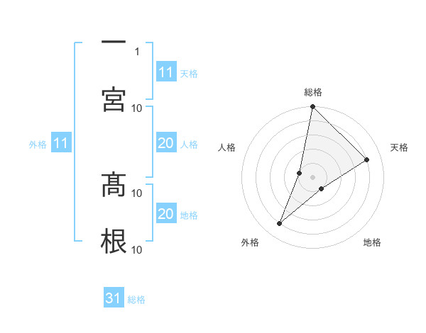 一宮 髙根さんを姓名の画数から五運を鑑定
