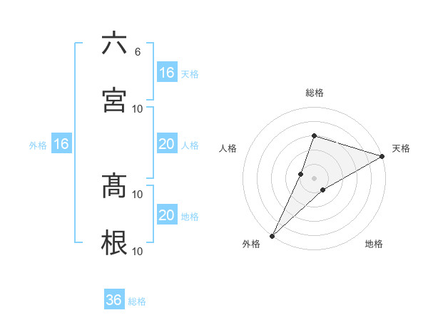 六宮 髙根さんの総格は36画の3点!