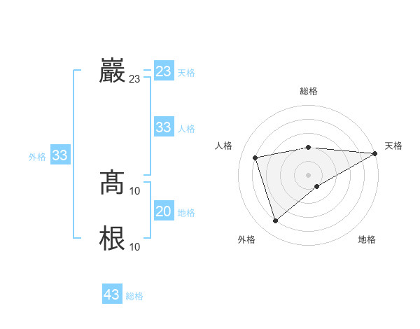 巖 髙根さんの天格は23画の5点!