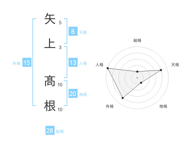 矢上 髙根さんを姓名の画数から五運を鑑定