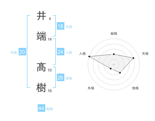 井端 髙樹さんの総格は44画の2点!