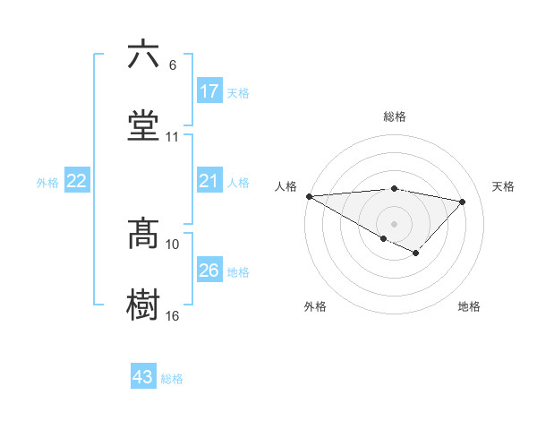 六堂 髙樹さんの外格は22画の1点!