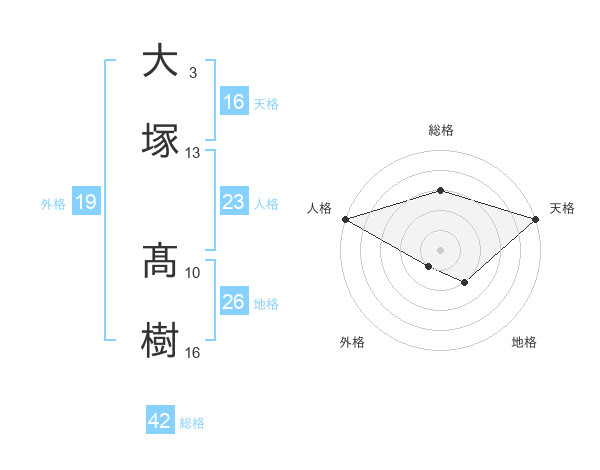 大塚 髙樹さんの総格は42画の3点!