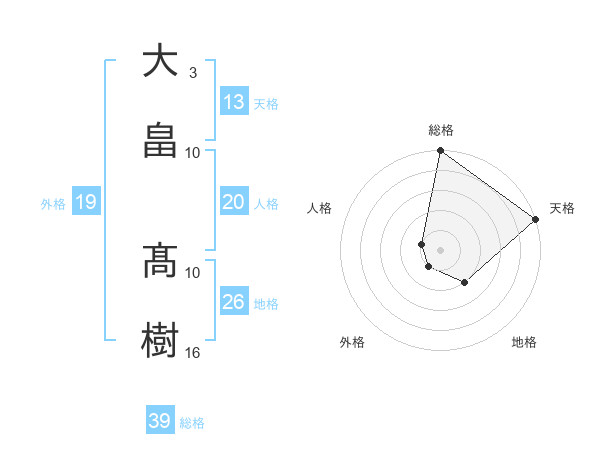 大畠 髙樹さんの総格は39画の5点!