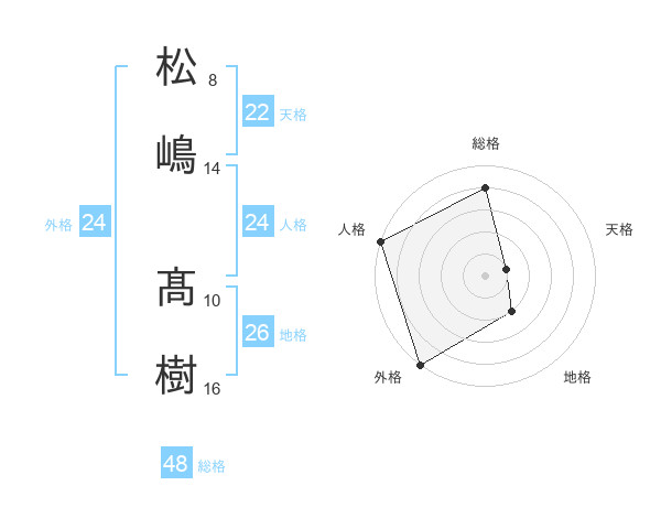松嶋 髙樹さんを姓名の画数から五運を鑑定