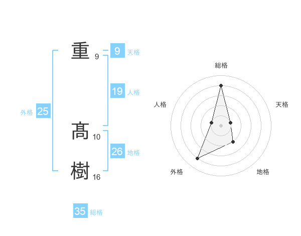 重 髙樹さんの外格は25画の4点!