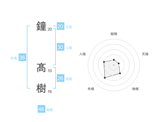 鐘 髙樹さんを姓名の画数から五運を鑑定