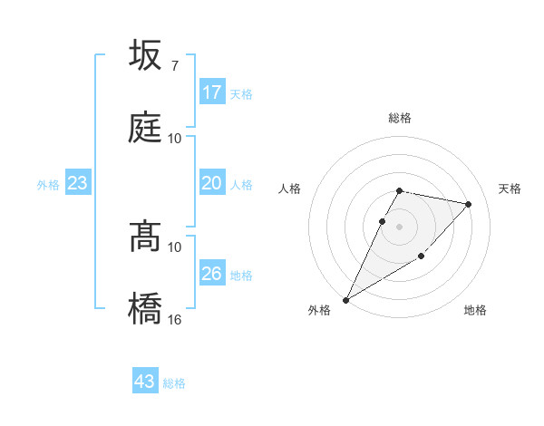 坂庭 髙橋さんの総格は43画の2点!