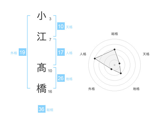 小江 髙橋さんを姓名の画数から五運を鑑定