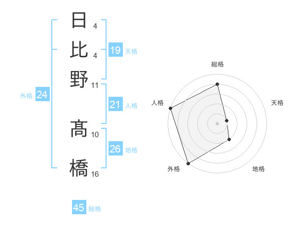 日比野 髙橋さんの総格は45画の4点!