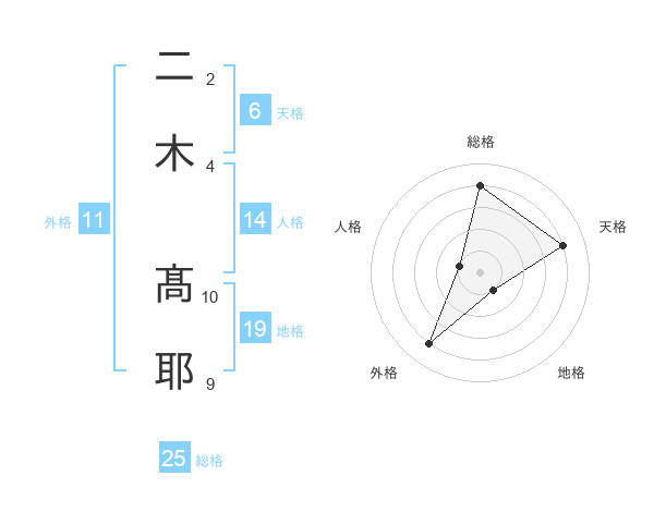 二木 髙耶さんを姓名の画数から五運を鑑定