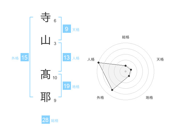 寺山 髙耶さんを姓名の画数から五運を鑑定