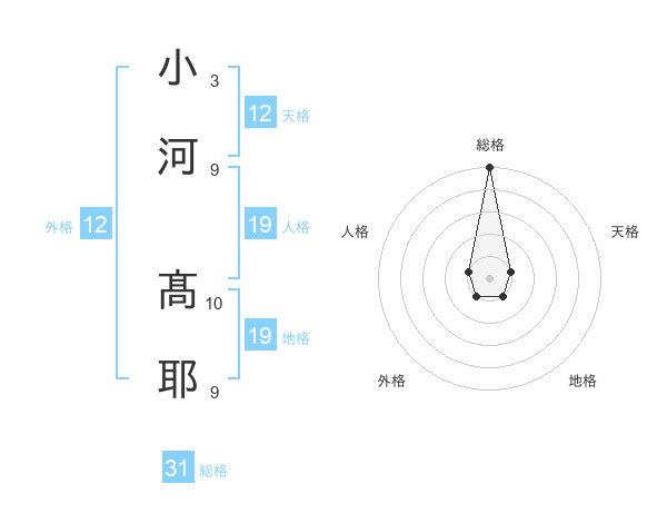 小河 髙耶さんの総格は31画の5点!