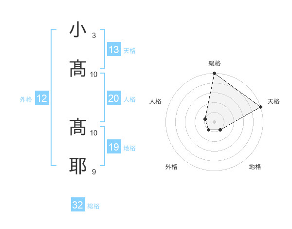 小髙 髙耶さんの総格は32画の5点!