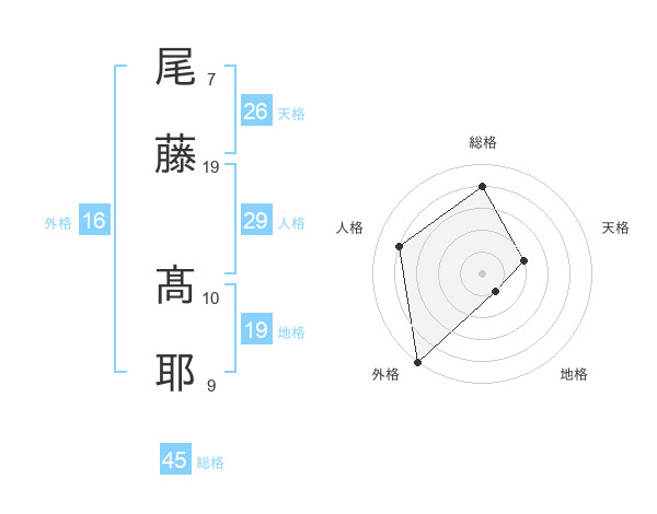 尾藤 髙耶さんを姓名の画数から五運を鑑定