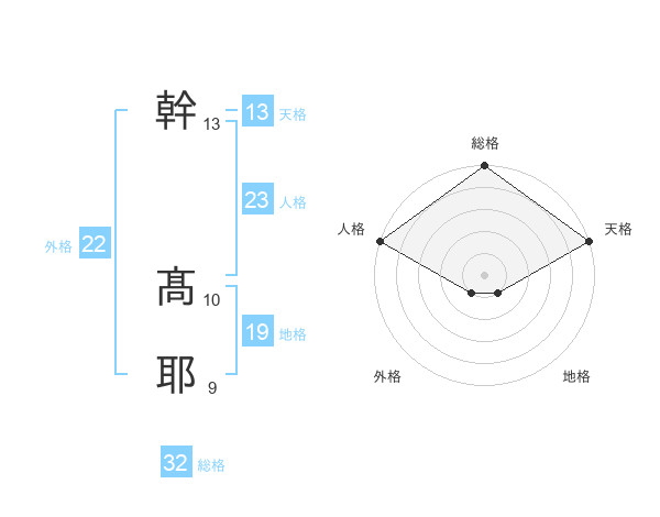 幹 髙耶さんの総格は32画の5点!