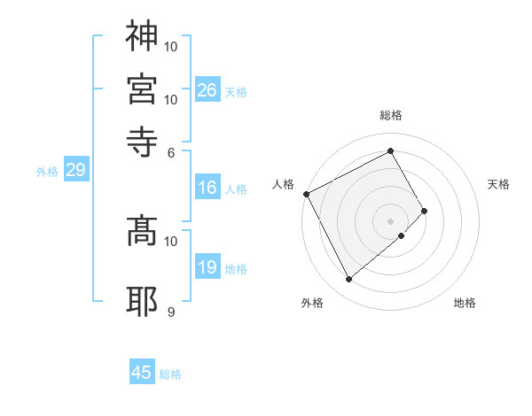 神宮寺 髙耶さんを姓名の画数から五運を鑑定