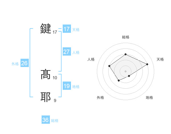 鍵 髙耶さんの天格は17画の4点!