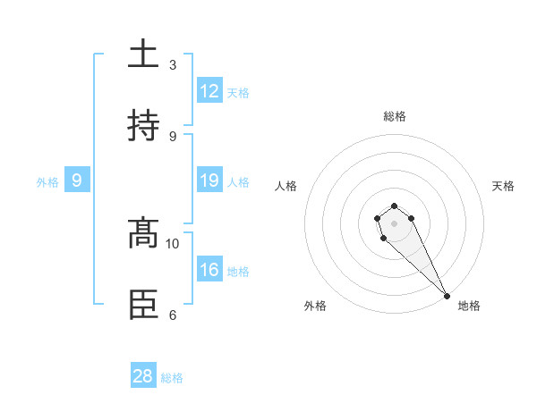 土持 髙臣さんを姓名の画数から五運を鑑定