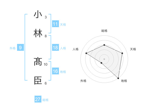 小林 髙臣さんを姓名の画数から五運を鑑定