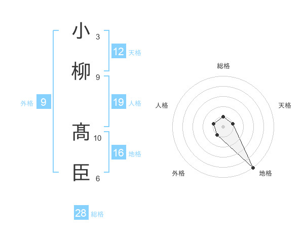 小柳 髙臣さんを姓名の画数から五運を鑑定
