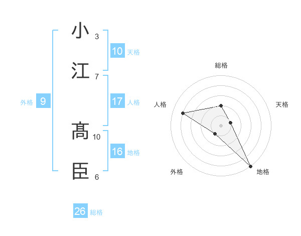 小江 髙臣さんを姓名の画数から五運を鑑定
