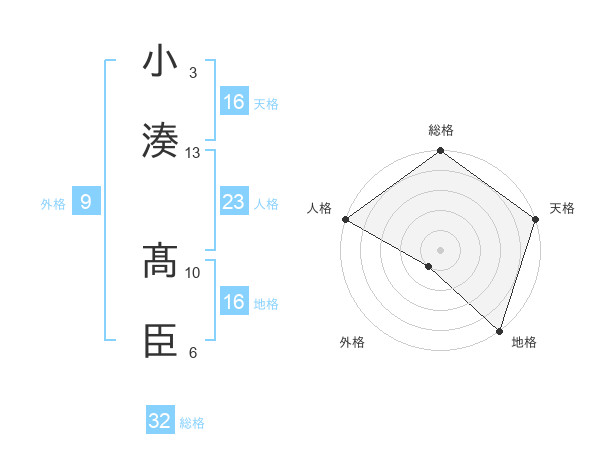 小湊 髙臣さんを姓名の画数から五運を鑑定