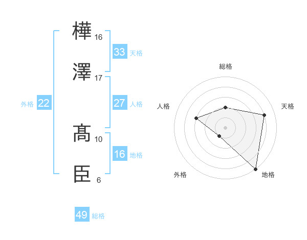樺澤 髙臣さんを姓名の画数から五運を鑑定