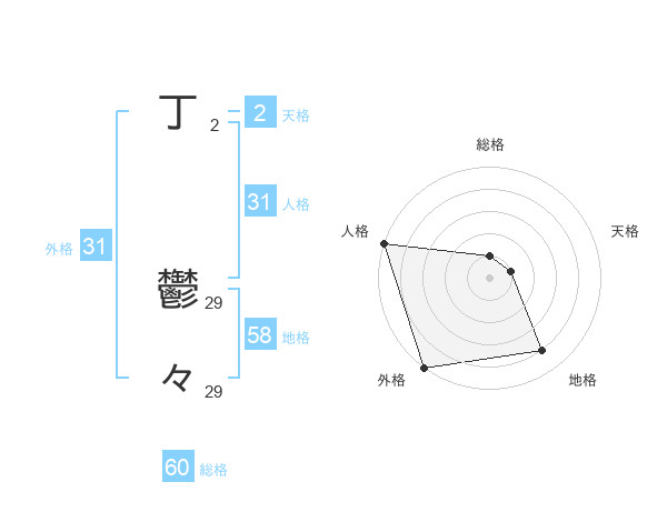 丁 鬱々さんの総格は60画の1点!