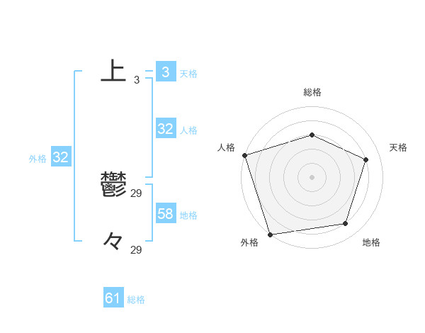 上 鬱々さんの外格は32画の5点!