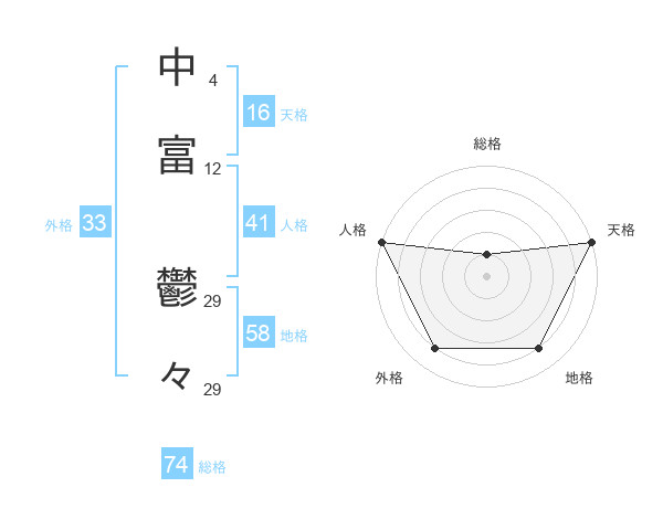 中富 鬱々さんの総格は74画の1点!