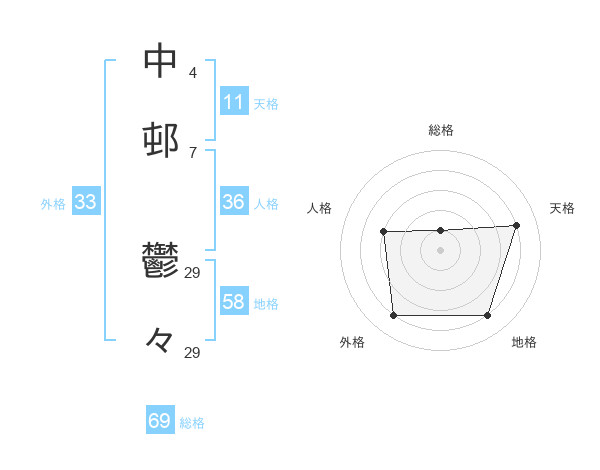 中邨 鬱々さんを姓名の画数から五運を鑑定