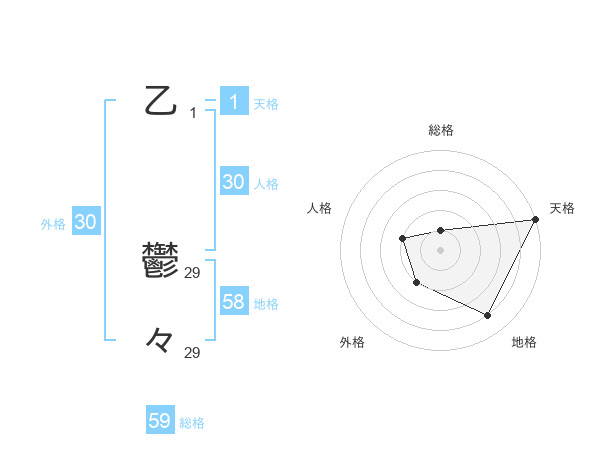 乙 鬱々さんを姓名の画数から五運を鑑定