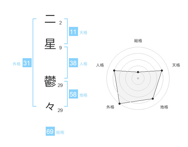 二星 鬱々さんを姓名の画数から五運を鑑定
