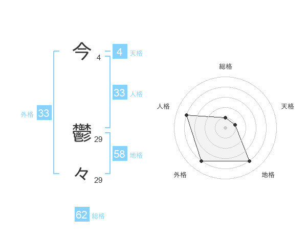 今 鬱々さんの外格は33画の4点!