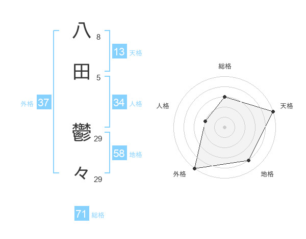 八田 鬱々さんの総格は71画の3点!