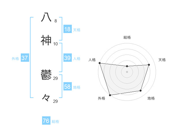 八神 鬱々さんの総格は76画の1点!