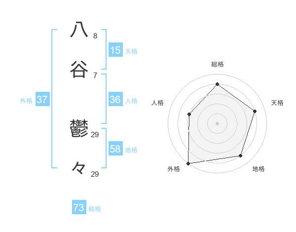 八谷 鬱々さんの総格は73画の4点!