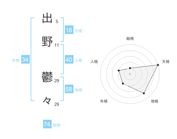 出野 鬱々さんの天格は16画の5点!