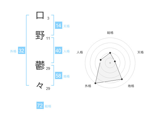 口野 鬱々さんを姓名の画数から五運を鑑定