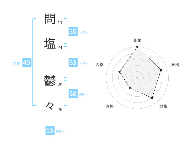 問塩 鬱々さんの総格は93画の5点!