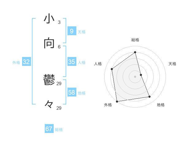 小向 鬱々さんを姓名の画数から五運を鑑定