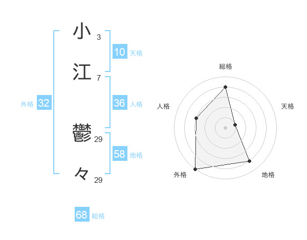 小江 鬱々さんを姓名の画数から五運を鑑定