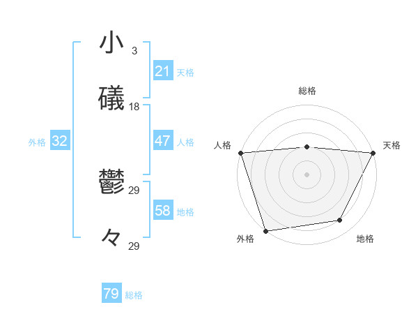 小礒 鬱々さんの総格は79画の2点!