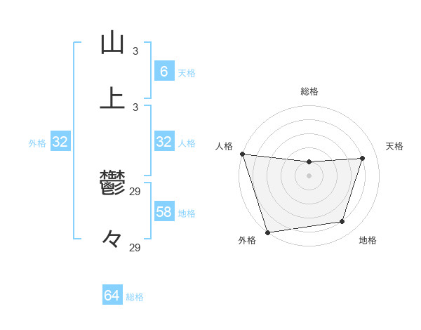 山上 鬱々さんを姓名の画数から五運を鑑定
