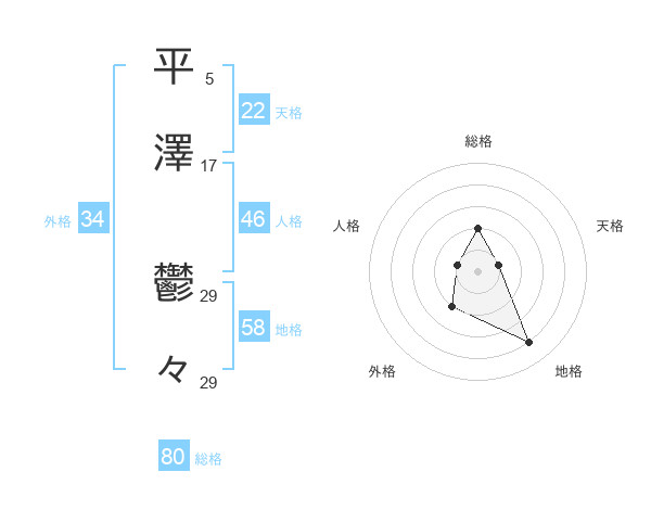 平澤 鬱々さんを姓名の画数から五運を鑑定