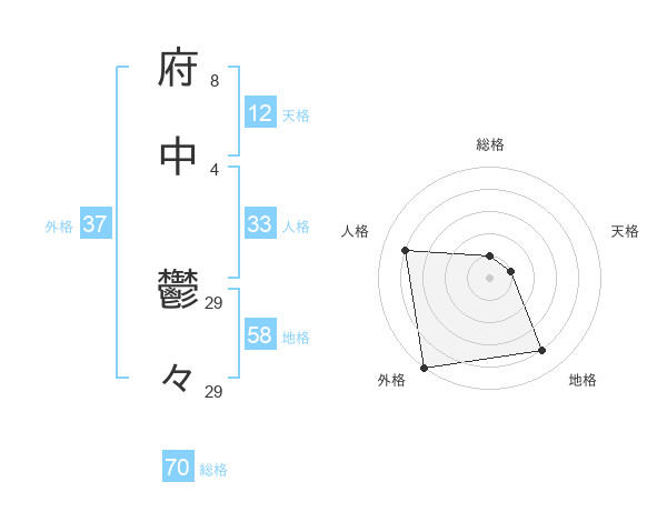 府中 鬱々さんの外格は37画の5点!
